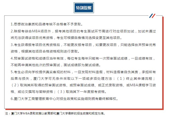 报考厦大MBA项目的考生原则上要求全部参加预审面试。