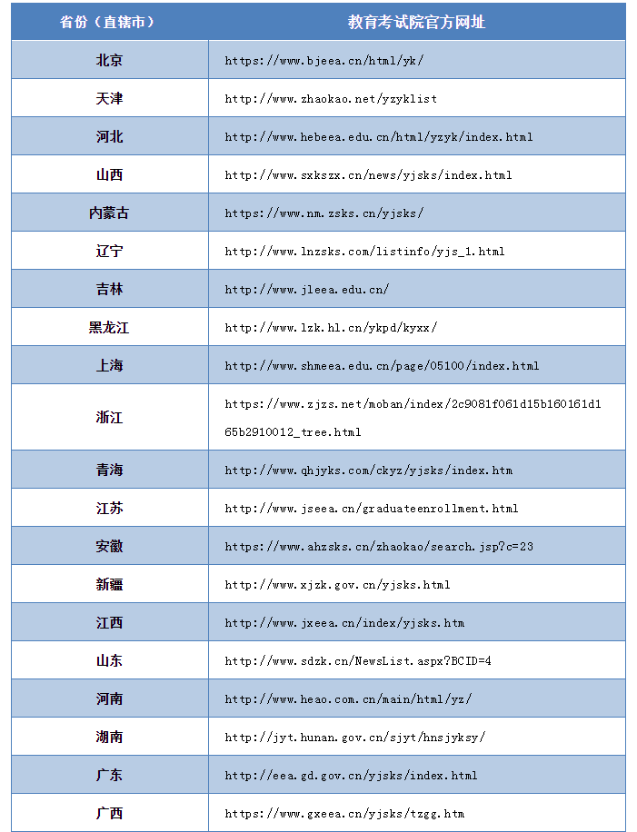 如果以下网址显示无法打开,可以尝试百度“省份+教育考试院”搜索。